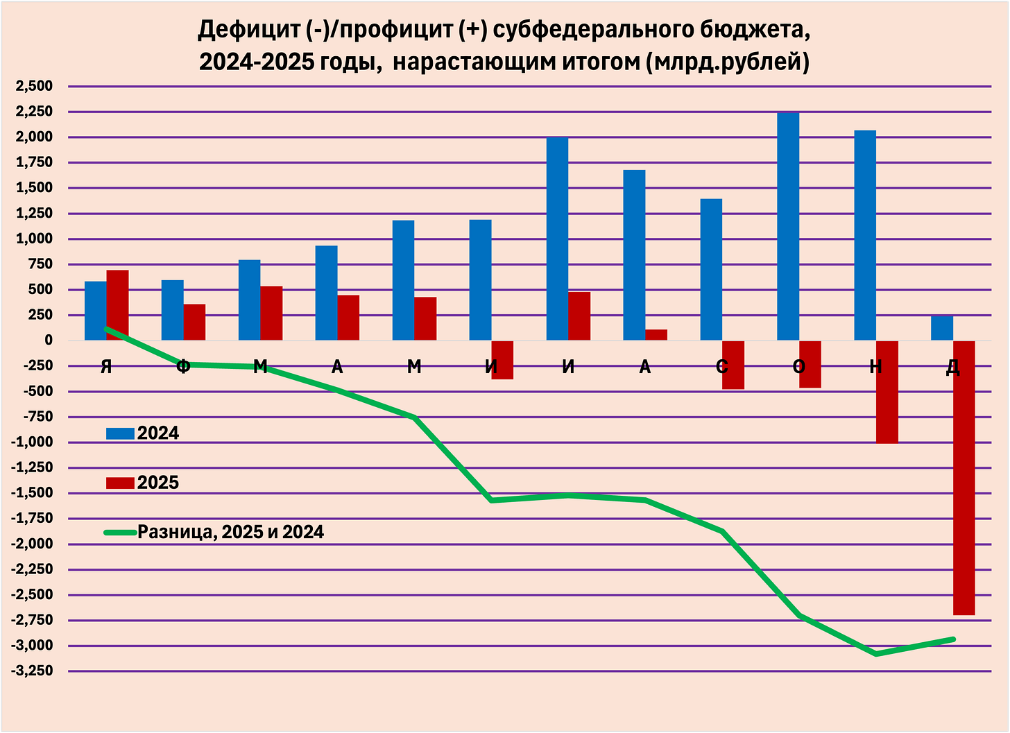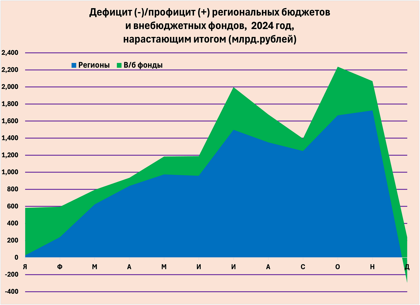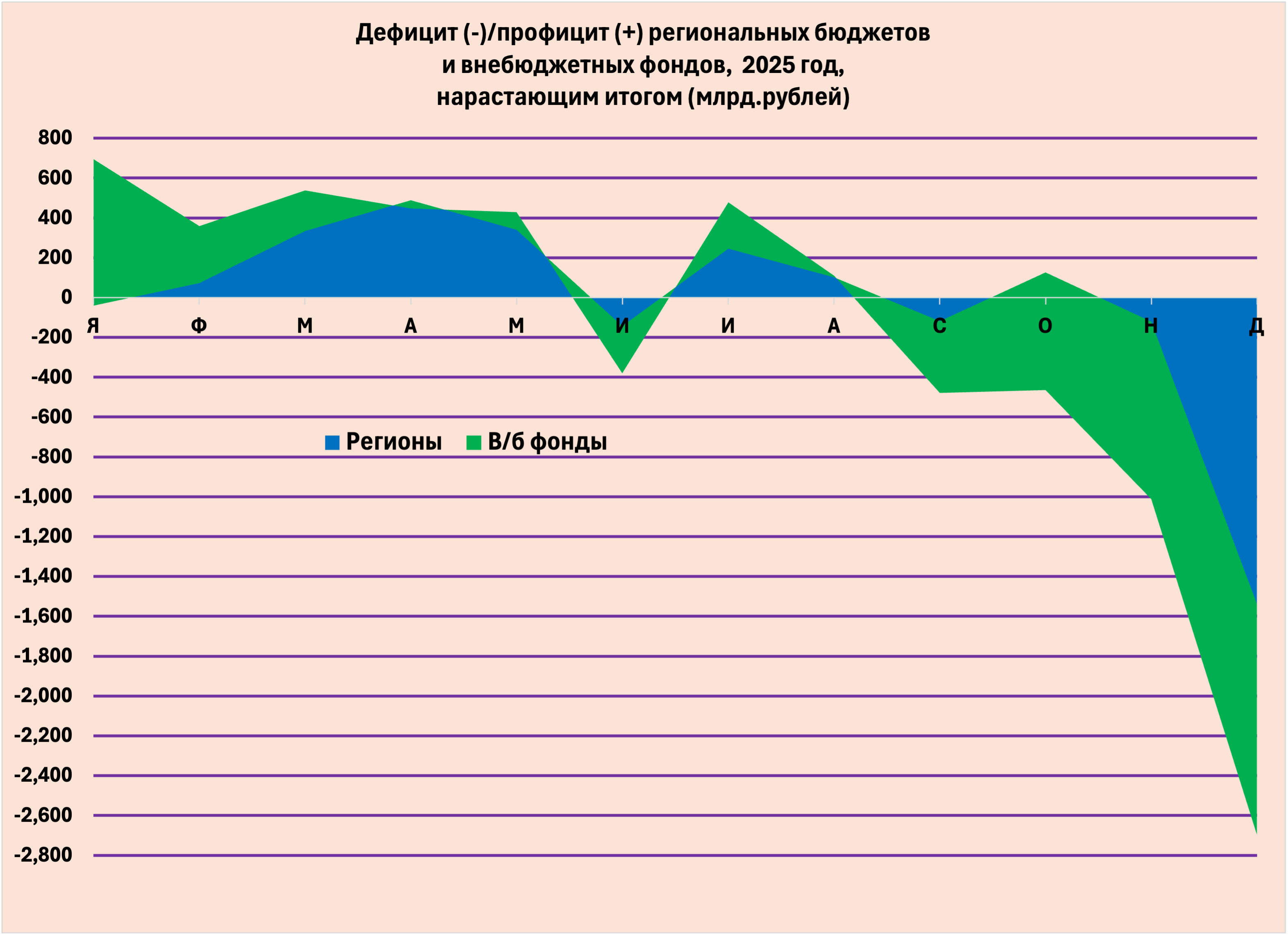 2. Стремительный рост дефицита в декабре, связанный с авральным закрытием года, подписанием актов и выплатой всех долгов, характерен не только для федерального бюджета, но и для бюджетов регионов (а чем они хуже?) и, что несколько странно, для внебюджетных фондов, расходы которых состоят, главным образом, из ежемесячных платежей населению. Такой рост дефицита в конце года наблюдался и в 2024 и в 2025 г.
