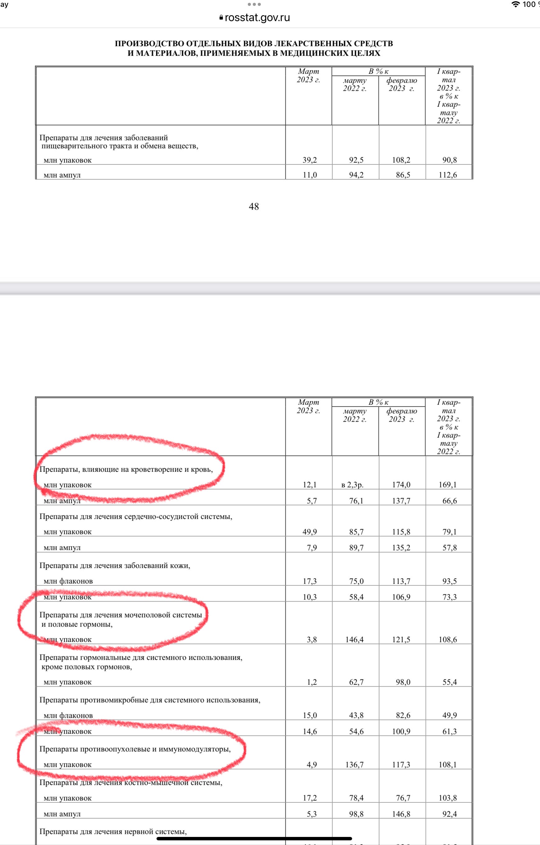 Замечательная таблица по производству медикаментов - двухкратный взлёт в производстве кровеостанавливающих препаратов (март к марту прошлого года) - догадайтесь с одного раза, в чём причина?!