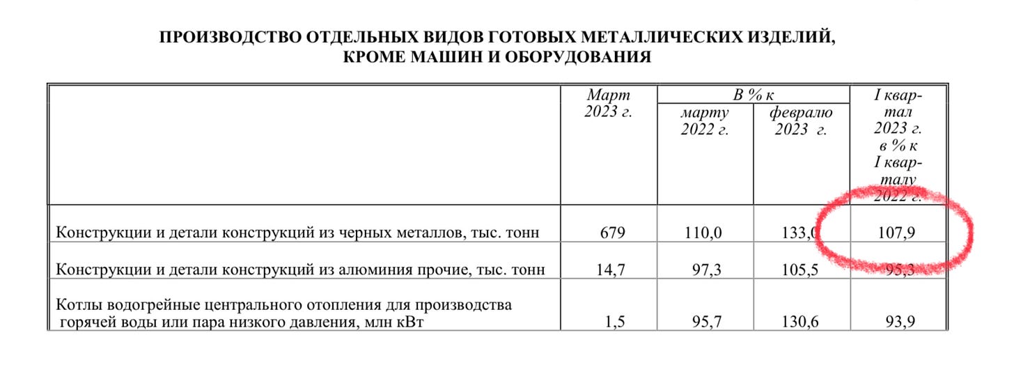 Очень прозрачный намёк на потребление металла для попытки защитить захваченное в ходе войны можно увидеть в резком росте производства металлоконструкций и ….